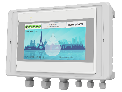 Our DAG-E-CAT is available in 12" and 7" sizes. It has a touch screen with built-in maps and leakage display on maps. The DAG-E-CAT locates leaks accurately to the nearest metre. The DAG-E-CAT allows you to detect several leaks simultaneously. Its history can manage up to 5000 events. The Dag-E-Cat solution is able to manage the sensitivity of the leak detection cable. Modbus / TCP IP communication modes as well as connection to a mobile network are available.