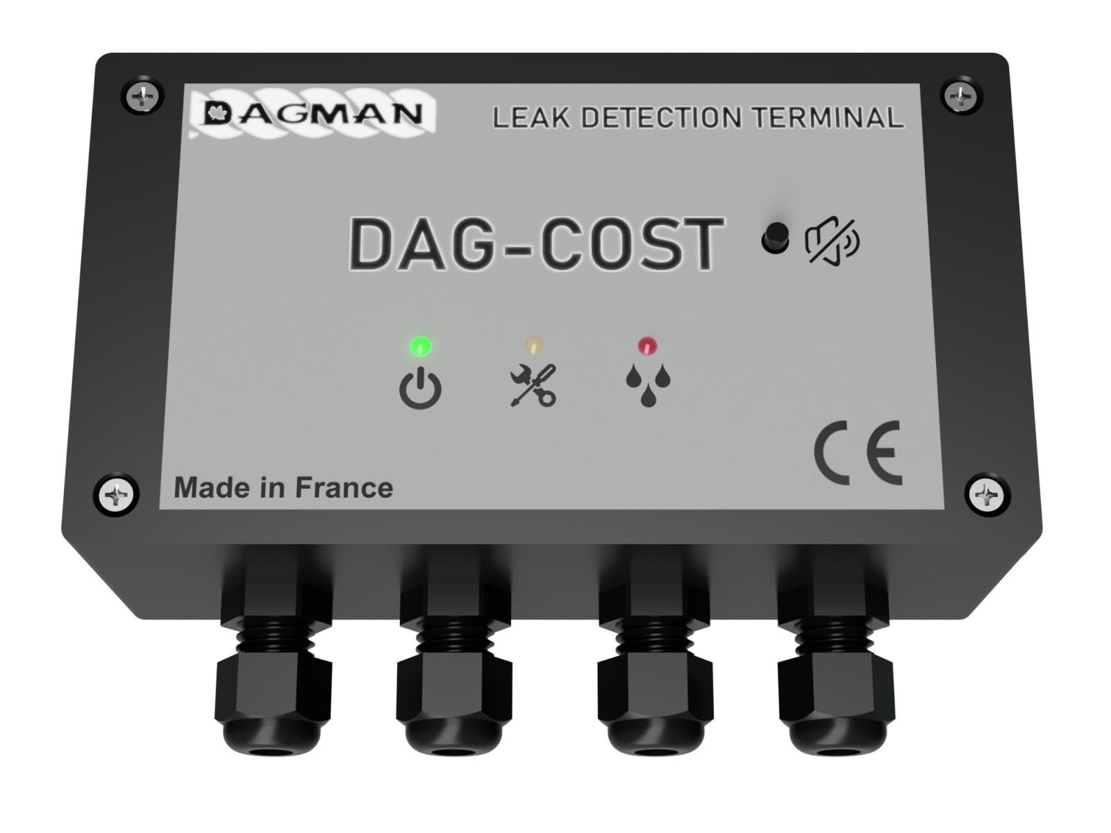 The DAG-COST detection unit is a basic, easy-to-install solution. It can manage up to 50 metres of detection cable. Visual and audible indicators on the front panel help you identify the type of alarm. It is fitted with a dry contact, and we offer you the option of an RS-485 serial Modbus output or a Modbus/TCP output via RJ45.