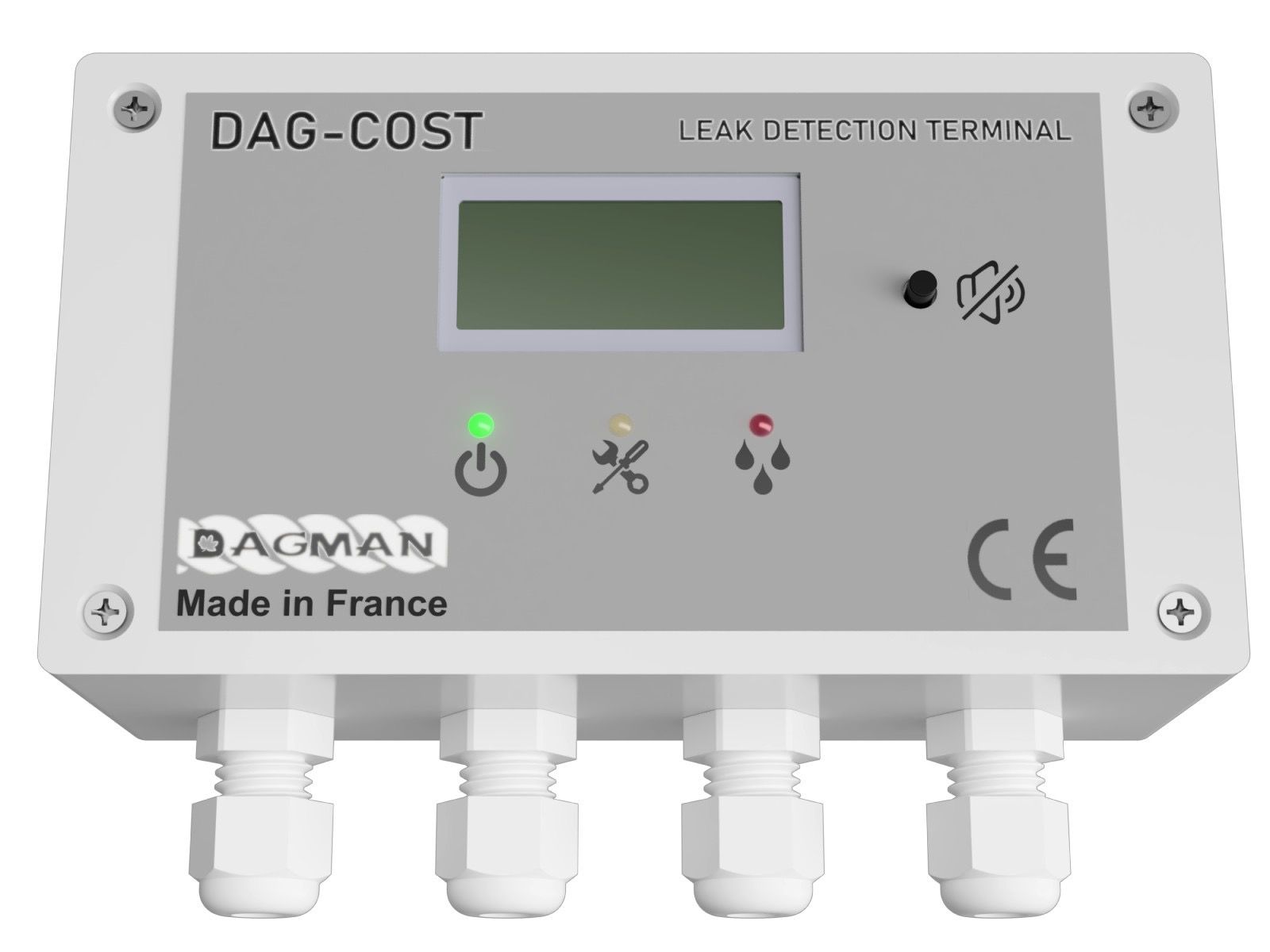 Our DAG-COST PLUS analogue detection unit is an intermediate solution. The DAG-COST PLUS can handle up to 120 m of detection cable. Its audible alarm and the indication of the leak on its screen allow you to detect a leak as accurately as possible. The DAG-COST PLUS has all the bells and whistles because you can also manage the leak threshold. It comes as standard with a dry contact, a power relay (leak) and a standard relay (fault). Optionally available with an RS-485 serial Modbus output or a Modbus/TCP output via RJ-45.